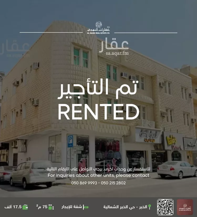 Fully maintained with deluxe finihsing and air conditioned apartment for rent in Khobar shamaliyah 1st First floor 2 rooms 1 living room 1 bathroom 1 kitchen Split AC The building is closed 24/7 and has CCTV cameras The rent is 20.5 k with bi-annual installments