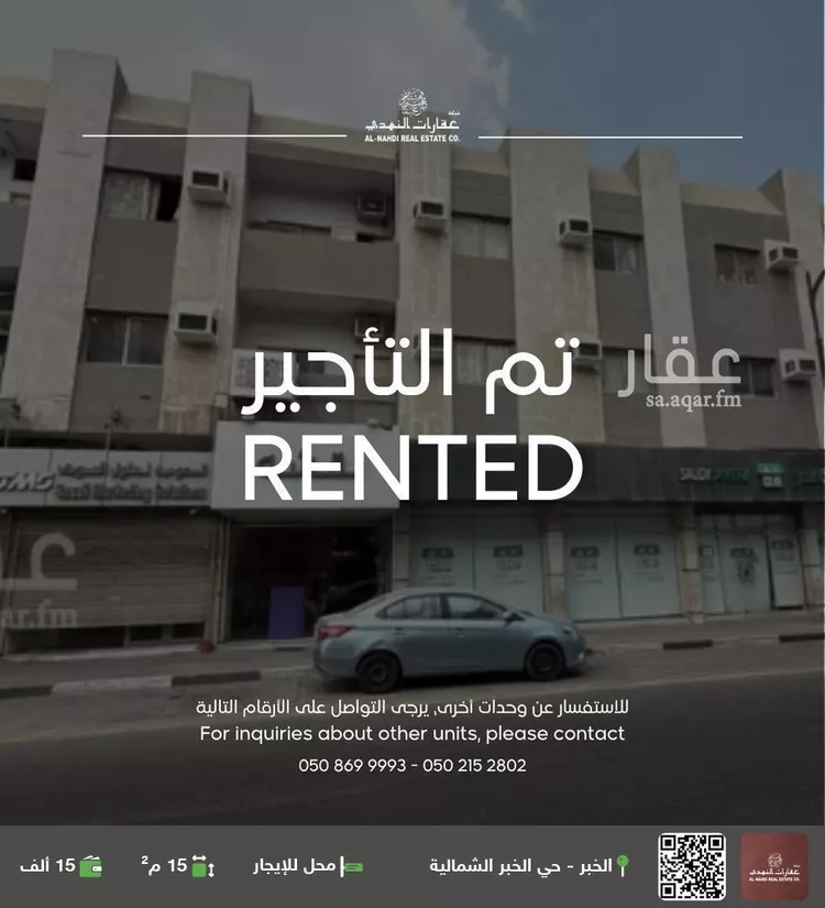 عمارة (227) محل تجاري للايـجار في موقع مميز ‏‎المسـاحة 80م شارع الملك خالد تقاطع 19 الايجار 50،000 الرجاء ذكر رقم العقار (227) ‏Please mention the building number في حال عدم الرد الرجاء ارسال رسائل واتساب للتواصل بالاتصال او عبر الواتساب : 0508699993 - 0530699993 - 0502152802 0138699991 شركة عقارات فهد النهدي الـخبر الشمـالية - شارع الامير بندر تقاطع 16 اوقات الدوام يومياً بإستثناء يوم الجمعة