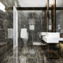 - الإنارة: سبوتات سقفية مع شرائط LED جانبية لإحساس فندقي ووقت مسائي أطول.