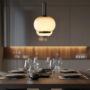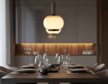 Combine pendant lighting above the table or island with soft backlighting and concealed LED strips under cabinets for a refined, balanced glow.